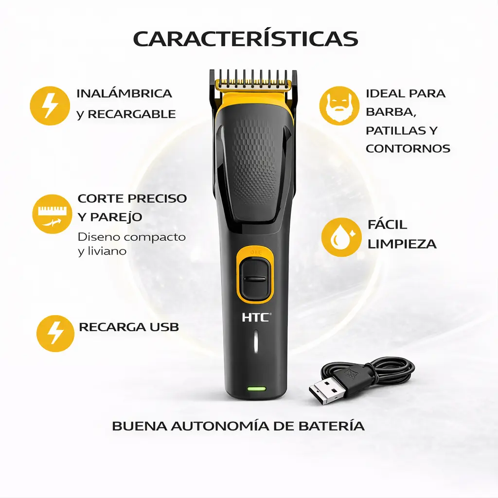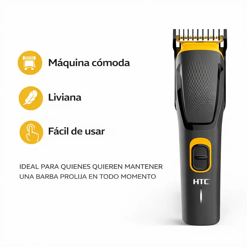 La corta pelo barba HTC AT-509 está diseñada para mantener la barba prolija, emparejar, rebajar volumen y marcar contornos de forma rápida y precisa.