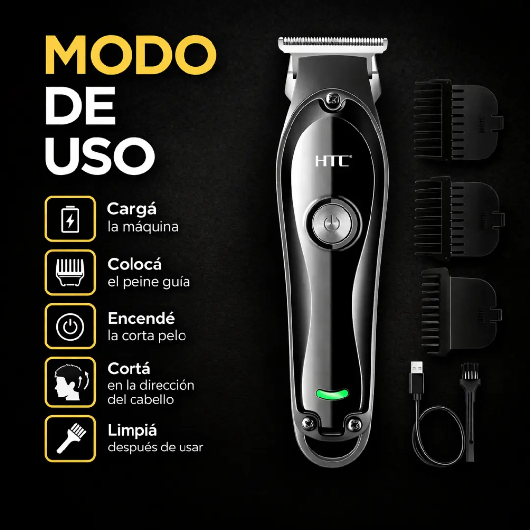 La HTC AT-118 combina tecnología, comodidad y precisión en un diseño compacto y ergonómico. Gracias a su funcionamiento inalámbrico, brinda total libertad de movimiento, permitiendo realizar cortes de cabello, retoques de barba y detalles con facilidad.