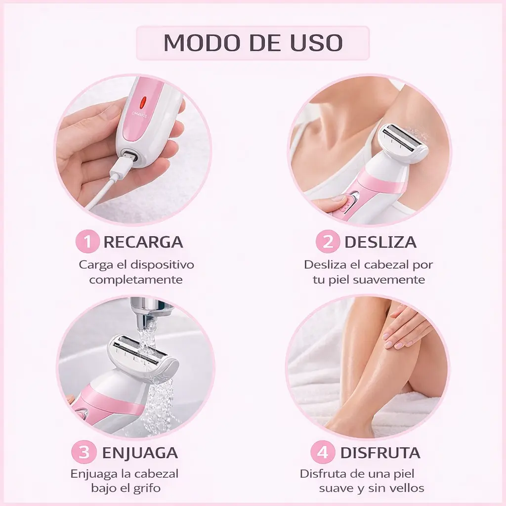 Beneficios que vas a notar desde el primer uso: ✔ Piel más suave y sin irritación ✔ Depilación rápida y sin dolor ✔ Ideal para zonas sensibles ✔ Resultado prolijo y natural ✔ Cómoda de usar en casa o llevar en tu bolso ✔ Diseño elegante y femenino