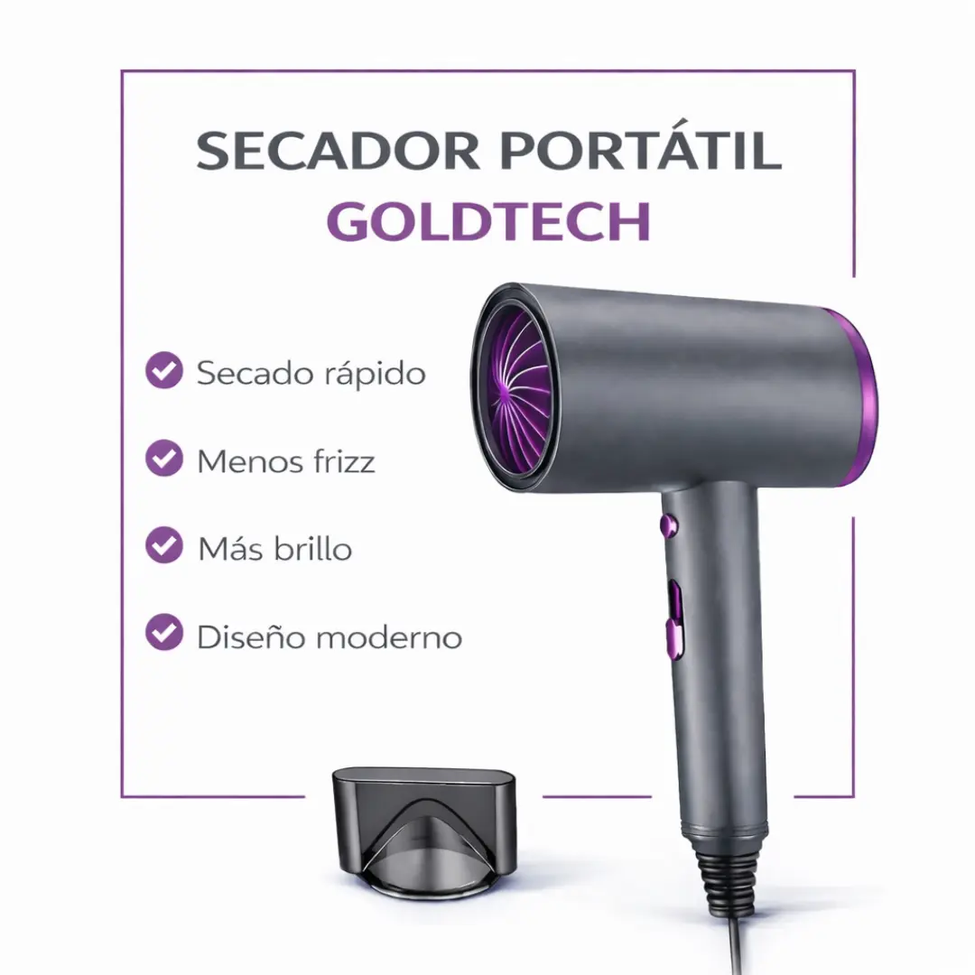 El Secador GOLDTECH llega para transformar tu rutina diaria en una experiencia rápida, cómoda y profesional, desde tu casa o donde estés.